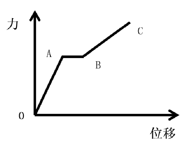 從薄膜拉伸試驗的大量實驗結(jié)果中,我們可以總結(jié)得出以下結(jié)論,在拉伸試驗初期,薄膜表現(xiàn)出一定程度的彈性,在下圖中,O-A段稱為瞬時彈性變形,在該階段,拉力的大小與被測材料拉伸程度之間的關(guān)系表現(xiàn)為正相關(guān)的增大,這一時間段拉伸停止后材料可以基本還原為原來的形態(tài)。隨著拉伸位移的不斷增加,圖中A-B段拉力變化在一個較小的范圍內(nèi)波動,這一現(xiàn)象表示被檢測材料已經(jīng)開始宏觀頸縮變形,這一階段材料將會失去原來的功能。隨著拉伸位移逐漸增大,薄膜試樣開始出現(xiàn)微型孔洞并且進一步變現(xiàn)為應(yīng)力集中,該階段拉伸位移和拉力又呈現(xiàn)出線性關(guān)系,在圖中表現(xiàn)為B-C段,薄膜發(fā)生大變形直到宏觀拉斷。